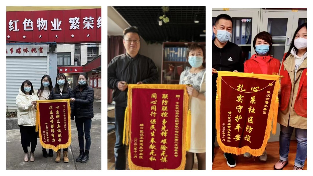? ? ? ?碧水集團積極配合社區開展疫情防控工作,充分發揮了黨組織的戰斗堡壘和黨員的先鋒模范作用,認真落實了在職黨員“雙報到”參加基層防控工作的精神。硚口區漢正街道永茂社區、永寧社區、萬安社區為碧水集團及下屬公司贈送錦旗表示感謝。萬安社區工作人員說:“感謝你們與我們站在一起、干在一處。”目前,碧水公司全部在職黨員均已下沉社區報到,用“先鋒紅”守護人民群眾的“健康綠”。